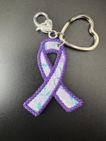 This handcrafted, applique, blinged out Awareness Ribbon Keychain features a heart shaped key ring and a heart shaped lobster claw.